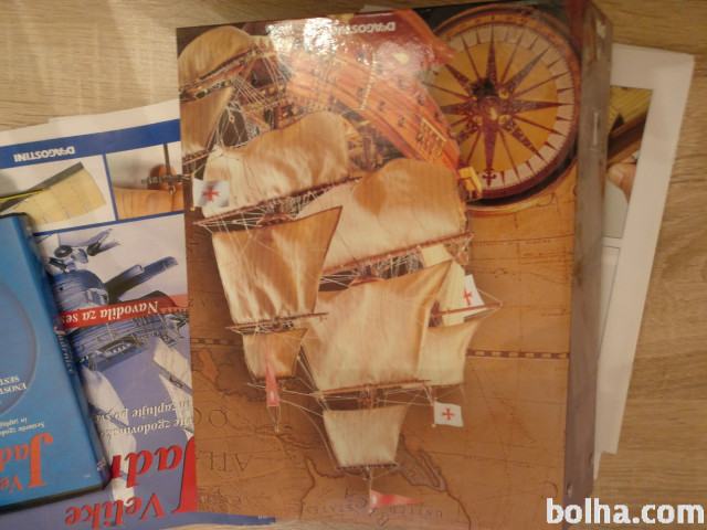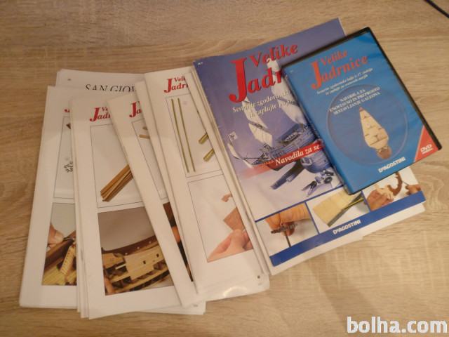 Prodam originalno zapakirane vse dele Velike jadrnice. Zadeva je primerna za začetnike v modelarstvu. V paktu je več kot 100 originalno zapakiranih vrečk ko vsebujejo že izrezane lesene dele, detajle (sidra, sodi), jadro itd. Zraven dodam 4 rednike o zgodovini ladjedelstva is same ladje ki jo sestavljate, stojalo za jadrnico ko bo sestavljena, DVD z video navodili. Vso potrebno orodje za izdelavo jadrnice je priloženo! 3/4 potrošnega materiala je zraven.