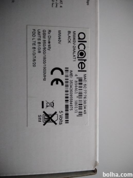Prodam LTE modem ALCATEL MW40V, črne barve.