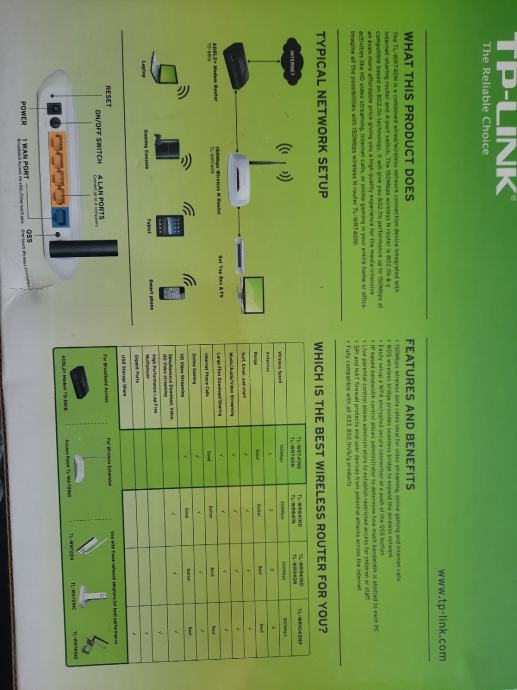 Prodam ruter TPLink. Podrobnosti na original škatli.