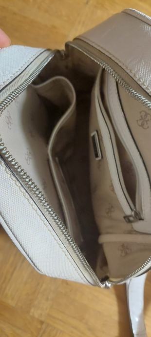 Prodam bel nahrbtnik GUESS ima en predal zunaj na notranji strani ima en predal in 3 žepe.