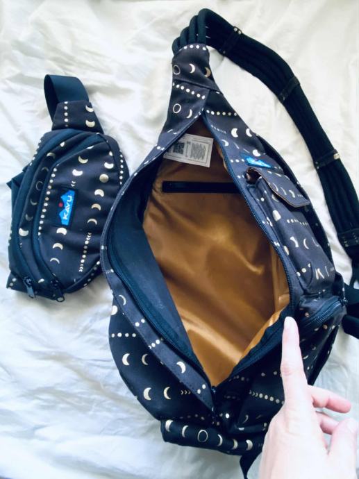 Nahrbtnik Kavu Rope Bag je sestavljen iz dveh žepov - enega z velcro in enega z zadrgo.