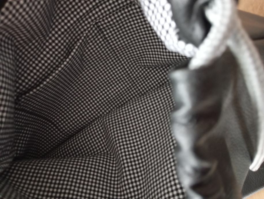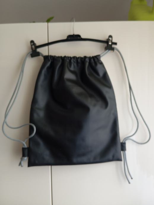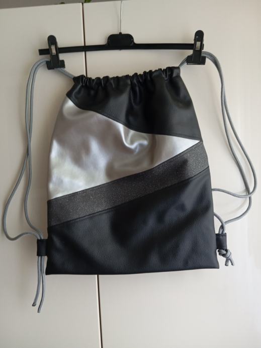 Nikoli nošen, kombinacija črne, srebrne in sive z belščicami. Ima en predal v katerem sta ob strani 2 žepa. Velikost je 35 x 43cm. Ne menjam, ptt ni vključena v ceno