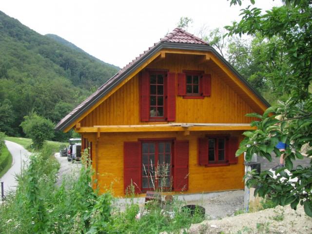 - Hiška je narejena izključno iz izbranega slovenskega lesa sekanega v zimski sečnji.