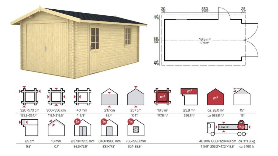 Set Maridinih lesenih garaž debeline 40 mm vključuje: