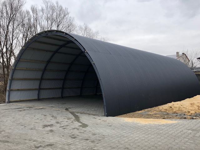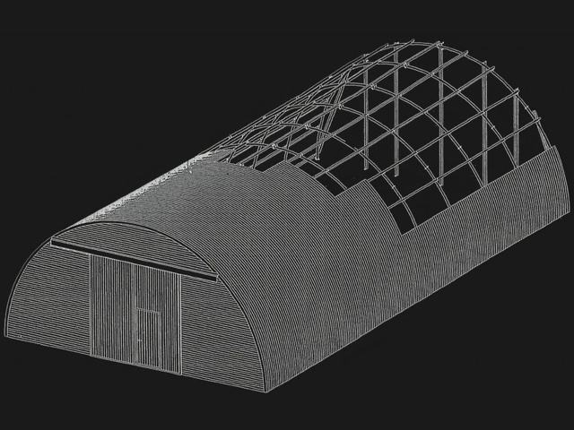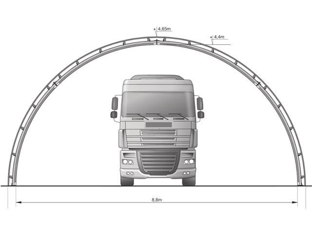 - jeklena konstrukcija z zaokroženo obliko omogoča gradnjo dvoran do širine 13m brez notranjih opornikov,