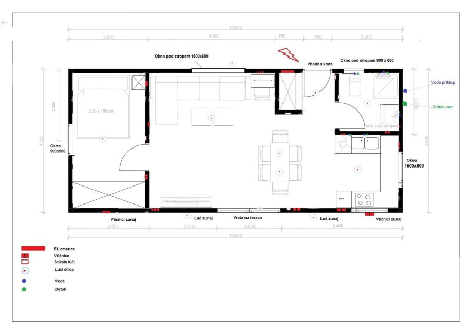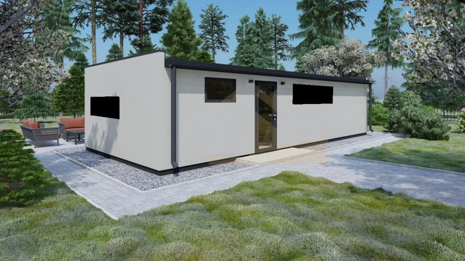 Zaradi opustitve projekta prodam po naročilu izdelano (še ne sestavljeno) osnovo za montažno hiško, oziroma od načina postavitve lahko tudi mobilno hiško. Hiška ima dva modula, prvi velikosti 10,5 x 4,5 m in drugi 4,5 x 2,5 m. Manjši del lahko služi kot samostojna enota (shramba, drvarnica ipd) lahko pa se pripoji k osnovnemu delu in tako skupaj tvorita hiško oblike ''L'' skupne velikosti 58,5m2.