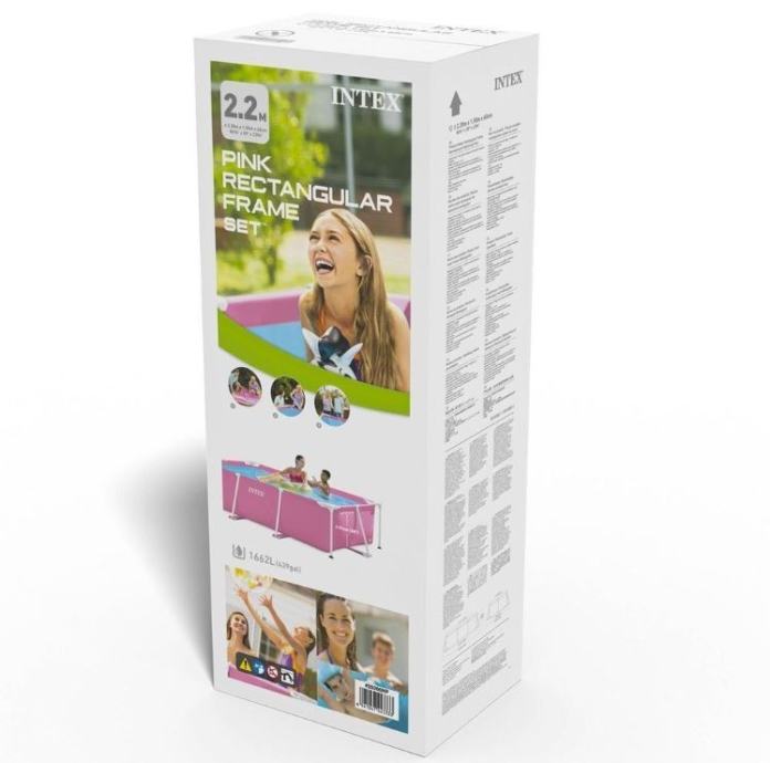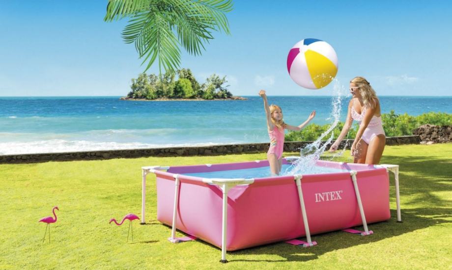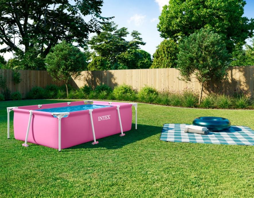 Bazen Intex Frame roza barve je narejen iz močnega jeklenega ogrodja ter platna iz 3 plasti (2 zunanji plasti PVC, notranja plast poliestra). Sestava bazena je izjemno lahka, razširite platno na ravno in zaščiteno površino ter povežite jekleno ogrodje med seboj. Bazen ima tudi otrokom prijazne zaobljene vogale, ki se lahko uporabljajo kot praktične police za odlaganje pijače ali sončne kreme.Koda: 28266Teža: 15,2 kgKoličina vode: 1.662 litrov ob 90% napolnjenostiZunanja dimenzija vključno s podpornimi palicami: 269 x 201 cmOdtočni ventilFilter ni vključen, na bazen lahko priključite filter s kodo: 28604, 28638Več podatkov o izdelku si oglejte na tej povezavi