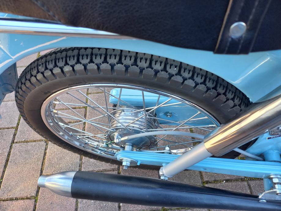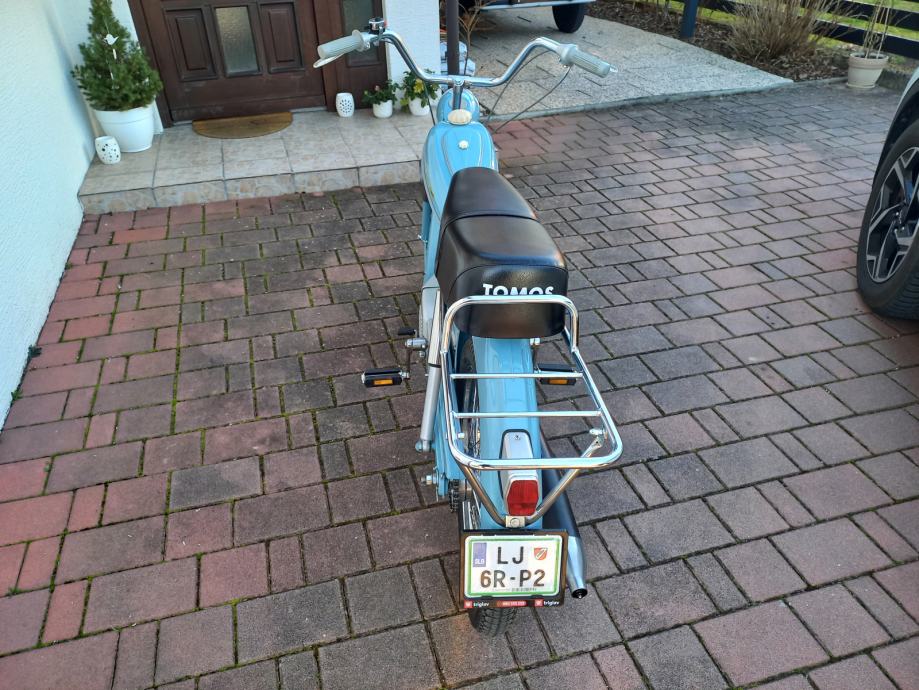 Obnovljena u piko. Prašno barvana, rezervoar zaščiten z epoksi v notranjosti, montirna 5 prestava, vsi deli original Tomos, registrirana do avgusta in letos stara 50 let.Original obroči in debele naperw. Vžge v prvo, gre ko satan. V bistvu obnovljena v tovarniško stanje. Cena zadnja. Glede na vložen trud in stroške zelo ugodna. Motor je obnovljen u piko.