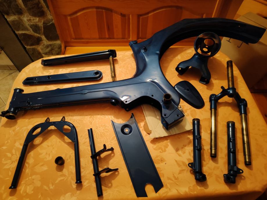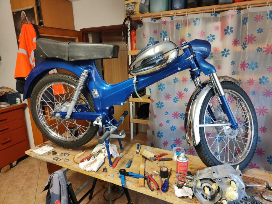 Iz slik je razvidno original stanje motorja, ko je prišel k hiši, proces obnove in končni izdelek, ki je sedaj na prodaj.