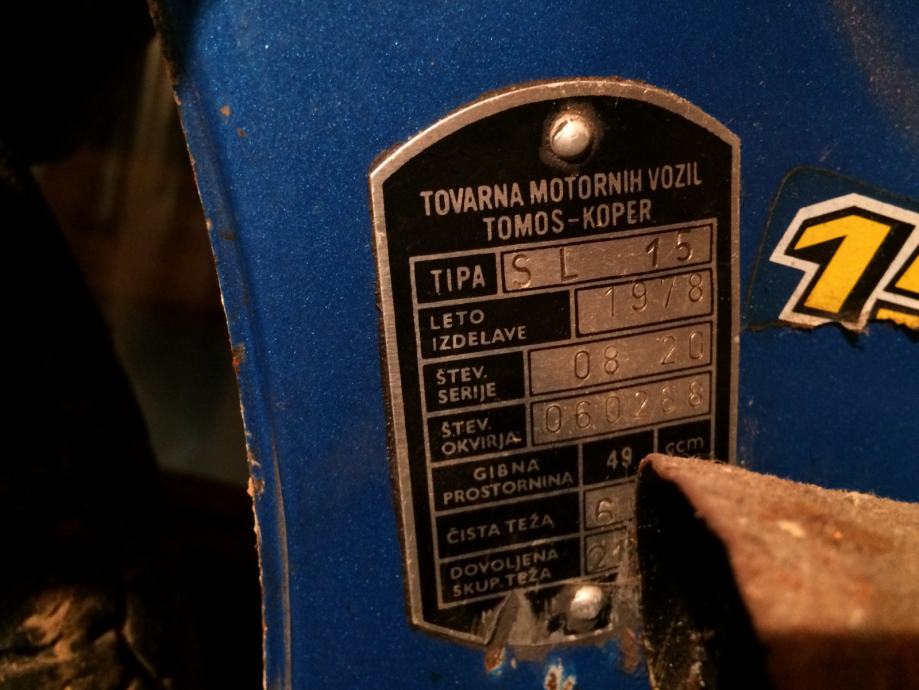 .Prodam-uvodnih 7 slik zelo redek,iskan sploh da je še vse v prvotnem tovarniškem stanju ki ga skoraj ni več mogoče dobit Tomos Colibri 15/sl-5 brzinec letnik 78 torej narejen med zadnjimi tega modela ki se od prejšnjih razlikuje da ima prvi konec ali točneje prvo luč že od 15 slc in marsikdo ga niti ne pozna saj jih je bilo zelo malo oziroma najmanj narejenih v zadnjem letu njihove proizvodnje 78.moped je v prvi plavi metalni barvi,grušt zdrav in vse na njemu še prvotno tovarniško,vse iste številke,mašina še najbrš ni bila odprta in z std 38 cilinder.sem že malo pozabil po 30 in več letih kar ga imam,moped imam namenoma zaprašen da je videt v duhu časa saj ga znam spucat in je še jako lep tudi barva da pritegne kupca vendar to ni moj namen,je vozen in samo po tej ceni saj že malo boljši preštevilčni apn ali drug moped stane toliko petnajstica je pa le poseben moped in redek,in mi je prav vseeno če ga prodam letos ali pa za 5 let ali pa če je še skoz pr bajti,težko se najde še kak originalen ki se lahko vozi tak kot je ali ga obnovite saj imate dobro računico ker takrat obnovljen je vsaj 5 jurjev in nimate kam porabit še 2500e za obnovo ker so vsi deli super na njemu in ko bo ta prej ko slej prodan bi težko rekel da ga bote še dobili v takem super stanju...registriran ni bil nikoli saj tudi vožen ni bil dost-le ob večjem splošnem nakupu je možno tudi po delih čeprav ne rad razkapam če tudi zaradi redkosti in iskanosti bi dobil več ga raj če že prodam v celoti in samo za to ceno in ko bo ta prej ko slej prodan bo se težko še kdaj tak originalen pojavil-rdeč 15 sport za 3100e-spodaj zadnji na informativni sliki je pa že prodan,...Posebej pa prodam mopede samo po delih-brez gruštov in še nekaj delov za razne tomos mopede ki pa nimajo z tem mopedom nič...telefon 041/247-004 ,hvala in LP