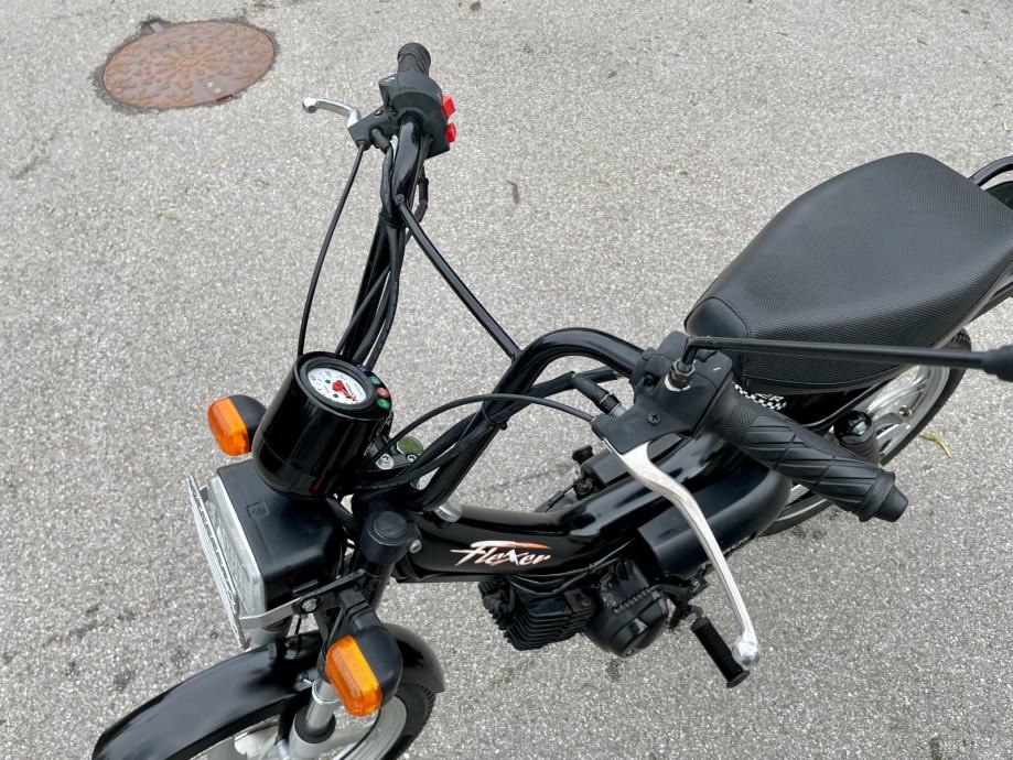 Tomos flexer narejen za svetovni trg. Motor ima rezervar za olje kar pomeni da ni potrebno delati mešanice saj motor sam dodaja olje, posebnost pa je tudi to, da so za vožnjo potrebni ključi. Ima tudi el. zaganjač - potrebno je obnoviti akumulator. Motor je bil tudi delno prebarvan. Letnik ~2011, prva registracija pa 2017, 9/2022 je bil opravljen tehnični pregled. Motor je med zadnjimi flexerji, ki jih je naredil originalni Tomos.
