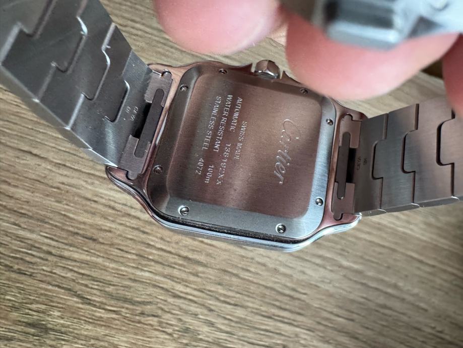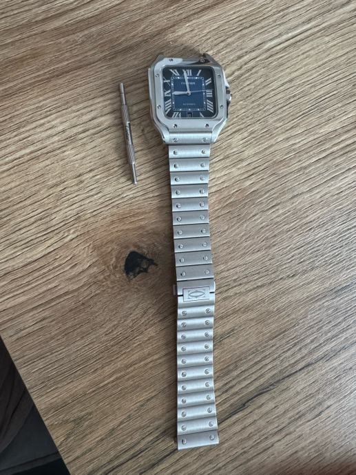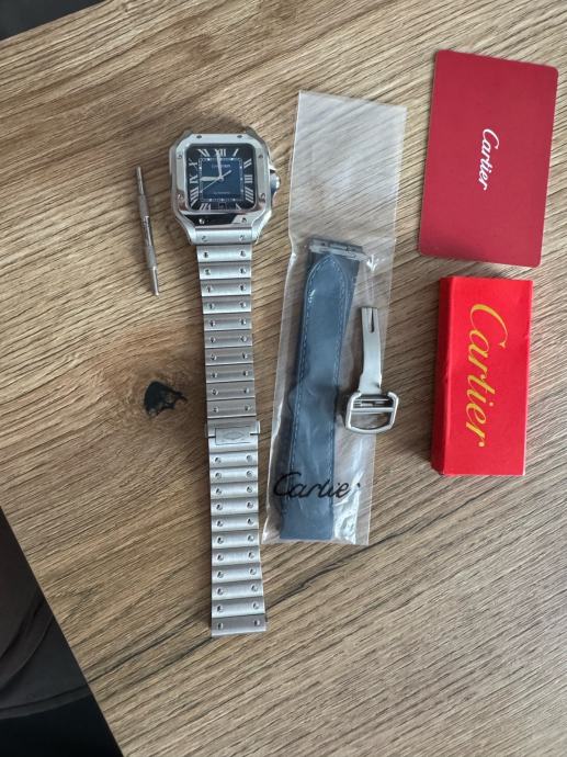 Poleg ure priložim še usnjen pašček ter original Cartier zaklep za pašček. Zraven spadajo tudi zglobi za pašček ker je ura bila krajšana ter orodje ki omogoča nastavitev dolžine paščka.