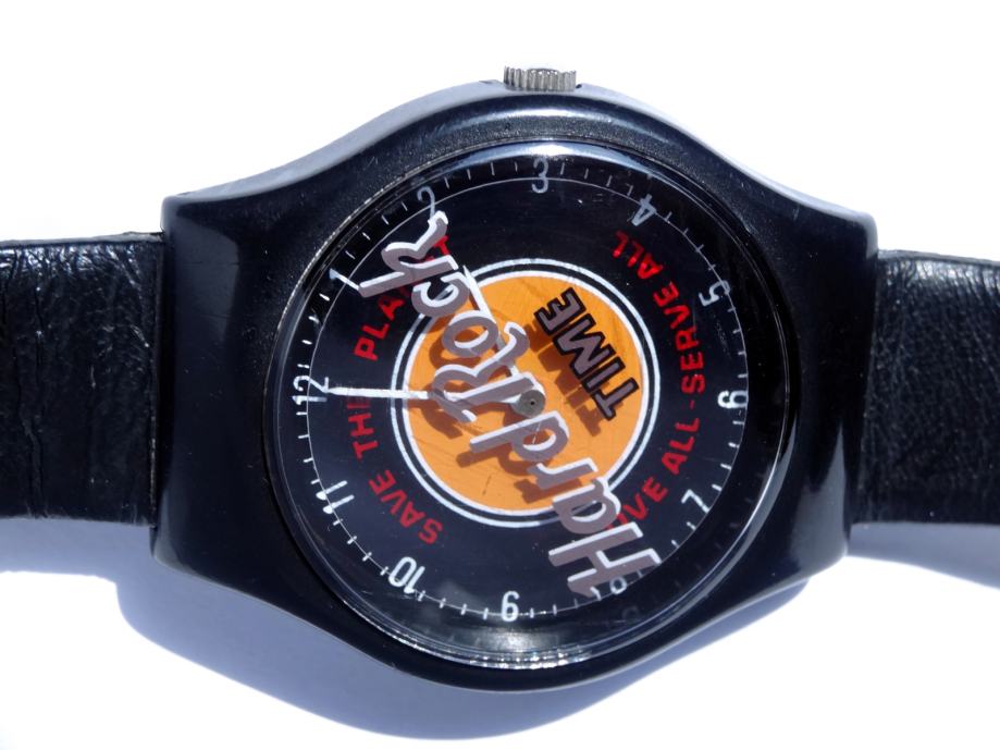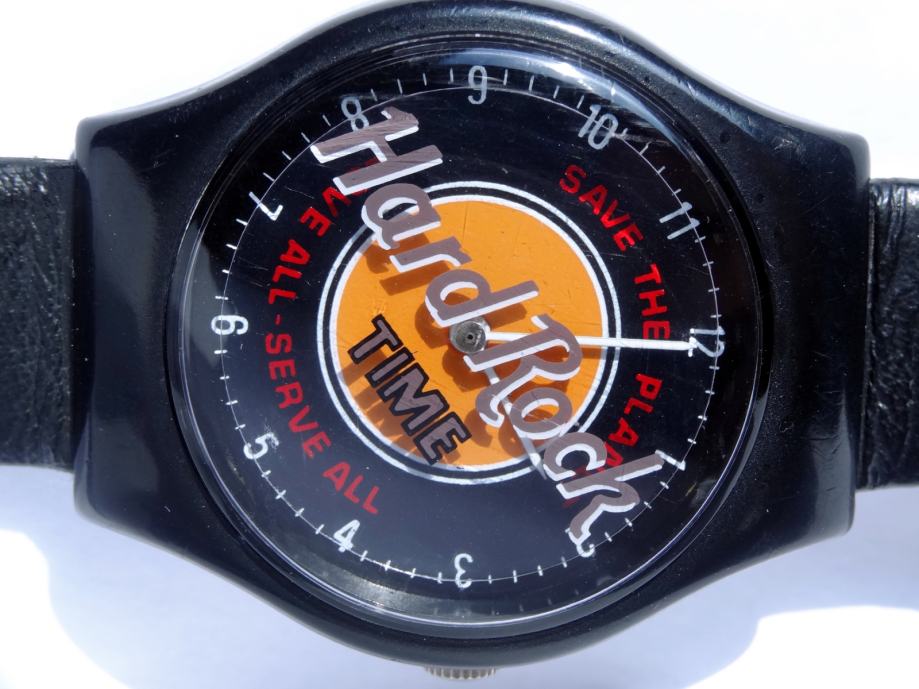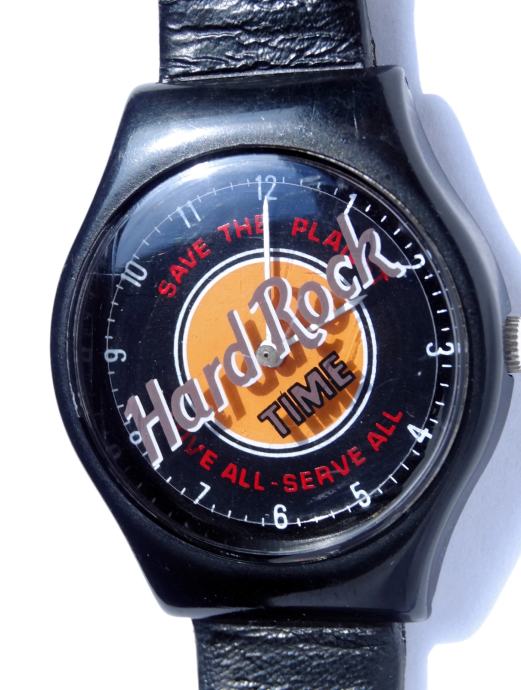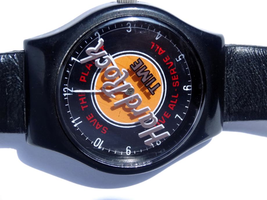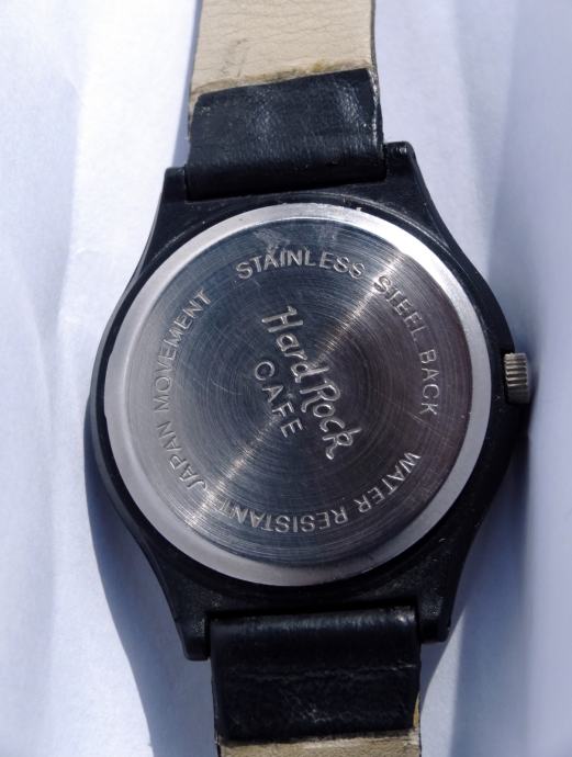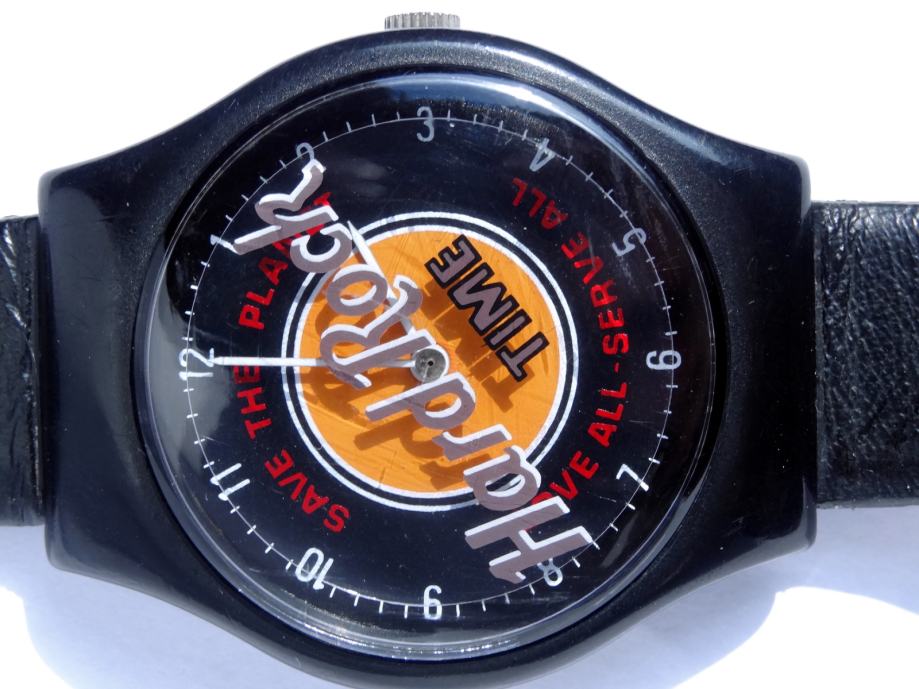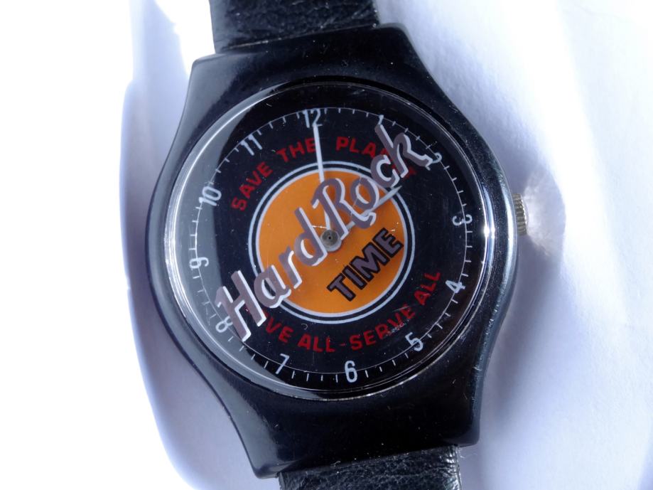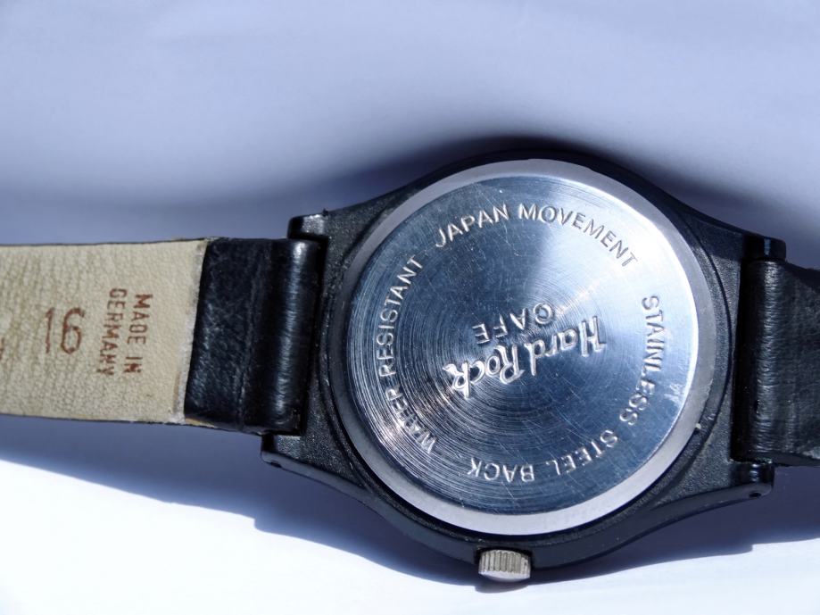 Ura je rabljena, dobro deluje. Zanimivost je, da se kot sekundni kazalec vrti celoten napis Hard Rock. Takšen model v črni barvi je precej redek. Pošta 3 EUR.