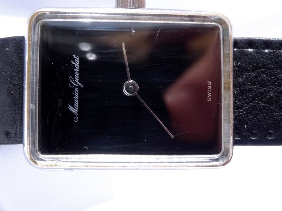 Kvalitetna mehanska moška ročna ura na navijanje. Ima žig prevleke z belim zlatom. Ura je zaprtega tipa, ampak kolikor sem preveril na spletu so uporabljali švicarske Eta mehanizme. Lepo in pravilno teče. Pod določenim kotom se vidi, da je bila popravljena praska na številčnici. Pri normalni svetlobi se sploh ne opazi. Pasek iz pravega usnja povsem uporaben. Mere: 30mm po širini, 24mm brez krone. Seveda jo lahko nosi tudi ženska.
