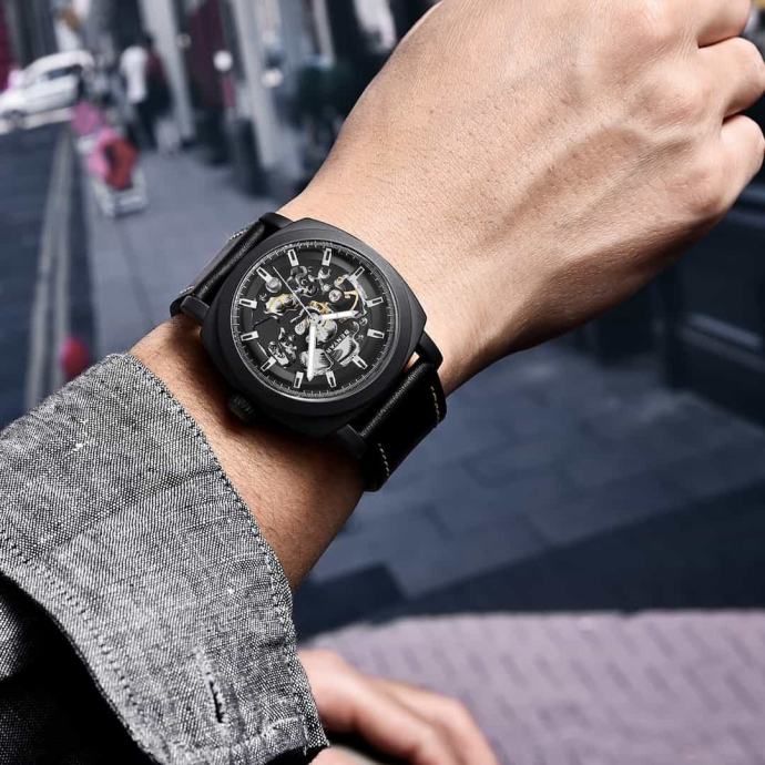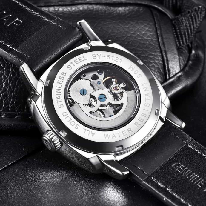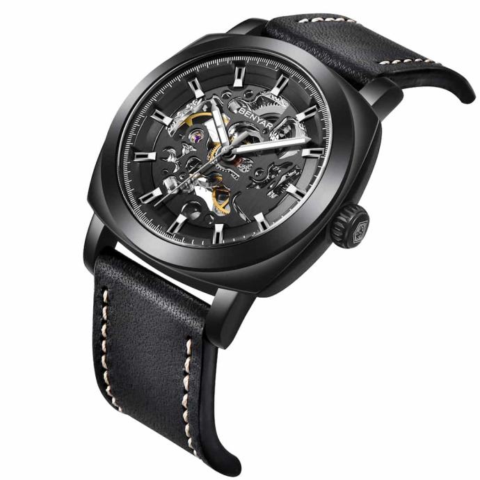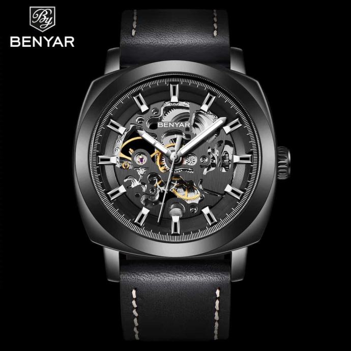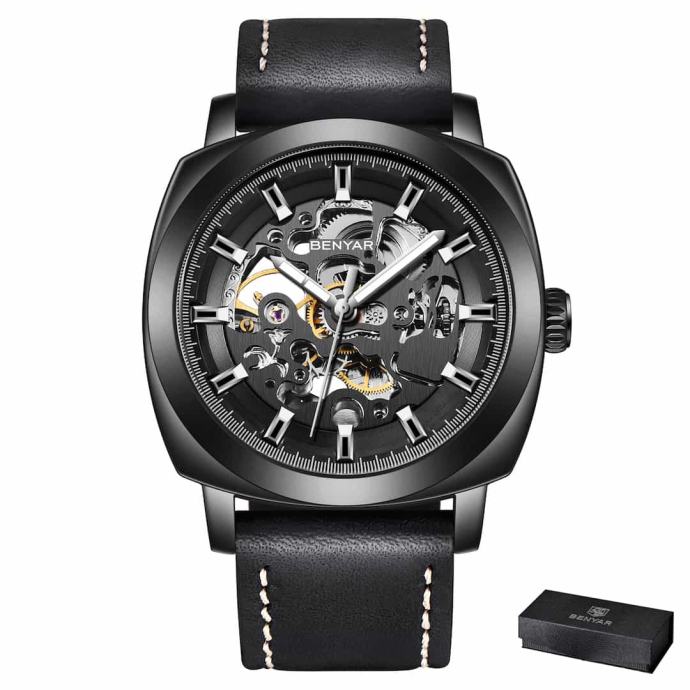 Moška ročna ura Benyar Mechanical Skeleton BlackOdkrijte vrhunsko mehaniko in edinstven dizajn z moško ročno uro Benyar Mechanical Skeleton Black. Ta mehanska ura je idealna izbira za sodobne moške, ki želijo izstopati z naprednim in sofisticiranim slogom. Moška ročna ura Benyar Mechanical Skeleton Black združuje prefinjen dizajn in elegantno estetiko v enem kosu. Skozi okroglo ohišje in prosojno številčnico lahko občudujete zapletene mehanizme, ki poudarjajo tehnično odličnost in brezčasno lepoto. Zadnja stran ure pa je prekrita s prozornim steklom, ki omogoča vpogled v srce njenega mehanizma. Vsak pogled skozi to steklo razkriva čudovito igro zobnikov in vzmeti, ki plešejo v popolni harmoniji, kar navdušuje in očara prave ljubitelje urarstva.Uro poganja mehanski avtomatski mehanizem, kar pomeni, da za delovanje ne potrebuje baterije. Njen prijeten in topel, skoraj neslišen “tik-tak” zvok bo razveselil resnične ljubitelje ročnih ur. Mehanske ure so izjemno trpežne; ob ustreznem vzdrževanju lahko mehanizmi delujejo več let.Ročna ura Benyar Mechanical Skeleton deluje s pomočjo avtomatskega mehanizma, ki ga poganja energija, shranjena v kovinskem peresu. Avtomatski mehanizem omogoča, da se ura navija sama med nošenjem, seveda pod pogojem, da je ura v gibanju. Če gibanja ni dovolj, je potrebno uro ročno naviti z vrtenjem krone v smeri urinega kazalca. Eno navijanje zadošča za približno 30 ur delovanja.Mehanski mehanizmi so namenjeni tistim, ki cenijo tradicijo in eleganco. Čeprav zahtevajo nekoliko več nege in pozornosti kot sodobne kvarčne ure, prinašajo edinstveno izkušnjo in čarobnost, ki jo je težko najti drugje. Mehanske ure morda ne zagotavljajo tako natančnega merjenja časa kot njihove kvarčne različice, vendar vam ponujajo priložnost, da uživate v nečem resnično posebnem in unikatnem. Če iščete uro, ki združuje zgodovino, estetiko in umetnost v enem kosu, je mehanska ura prava izbira za vas.Lastnosti in prednosti ure: Izjemen dizajn: Prosojna številčnica, ki razkriva mehanično delovanje, ustvarja edinstven in privlačen videz. Ta dizajn se odlično poda k vsaki priložnosti in izraža vašo edinstvenost. Vzdržljivost: Ohišje iz nerjavečega jekla in Hardlex steklo zagotavljata dolgo življenjsko dobo ter odpornost proti praskam in udarcem. Natančnost: Mehanski mehanizem G3265Z zagotavlja natančnost in zanesljivost, kar pomeni, da boste vedno točno vedeli, koliko je ura. Udobje: Usnjeni pašček je prilagodljiv in udoben za nošenje skozi ves dan, obenem pa zagotavlja eleganten videz.Tehnične lastnosti: Premer številčnice: 44 mm – idealna velikost za izrazit moški videz. Debelina ohišja: 15 mm – zagotavlja robustnost in trpežnost. Širina paščka: 23 mm – za udobno nošenje in eleganten videz. Teža: 95 g – optimalna teža za udobno nošenje. Material ohišja: Nerjaveče jeklo – zagotavlja odpornost in trajnost. Tip stekla: Hardlex steklo – odporno na praske in udarce, kar zagotavlja dolgo življenjsko dobo in jasen pogled na številčnico. Vodoodpornost: 3 ATM – primerna za vsakodnevno uporabo. Mehanizem: G3265Z – zagotavlja natančnost in zanesljivost.Dodajte svojemu videzu eleganco z moško ročno uro Benyar Mechanical Skeleton BlackVsak trenutek, ki ga preživite z moško ročno uro Benyar Mechanical Skeleton Black, je trenutek, ko se povežete s tradicijo in inovacijo. Skozi prosojno številčnico lahko občudujete zapletene mehanizme, ki so srce te ure, kar prinaša občutek nostalgične romantike in tehnične mojstrstva. Vidni mehanizem je kot ples zobnikov in vzmeti, ki neustavljivo in ritmično tečejo, kot metronom časa. Vsak pogled na to uro vas spomni na prefinjeno umetnost urarstva, kjer je vsak delček natančno izdelan in nameščen z ljubeznijo in strastjo.Ta prefinjena ura ni samo praktična, temveč tudi izraz vašega osebnega stila. Elegantni črni dizajn z unikatno črno številčnico ter belimi in rumenimi kazalci bo zagotovo pritegnil pozornost in dodal pridih prefinjenosti vsaki vaši opravi, ne glede na priložnost. Ne zamudite priložnosti, da postanete ponosni lastnik te izjemne ure, ki združuje modni videz in vrhunsko kakovost. Ura je zasnovana za moške, ki cenijo estetiko in funkcionalnost v enem. Naročite zdaj in uživajte v popolni harmoniji stila in zanesljivosti, ki vam bo služila dolga leta. Dovolite si luksuz, ki ga prinaša Benyar Mechanical Skeleton Black, in izstopajte z vsakim korakom.Nakup ročne ure je popolnoma brez tveganja, saj imate možnost, da v roku 60 dni po prejemu uro vrnete, mi pa vam vrnemo denar.Prav tako ima ročna ura 12-mesečno garancijo.Ročna ura bo tudi odlično darilo, saj jo boste prejeli v originalni Benyar darilni škatlici.Sami se prepričajte o vrhunski kakovosti in elegantnem dizajnu ročne ure Benyar Automatic - ne boste razočarani!