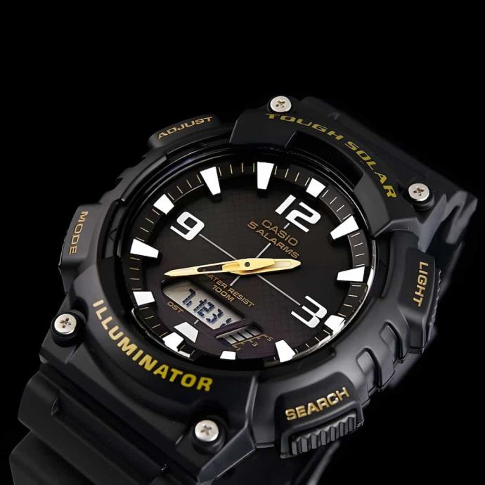 Moška ročna ura Casio Tough Solar AQ-S810W-1BVEFMoška ročna ura Casio Tough Solar AQ-S810W-1BVEF je popolna izbira za vse, ki potrebujejo robustno, zanesljivo in funkcionalno uro. S Tough Solar tehnologijo omogoča polnjenje s svetlobo, kar odpravlja potrebo po menjavi baterije. Športni dizajn, napredne funkcije in trpežni materiali jo naredijo idealno za vsakodnevno uporabo in ekstremne pogoje.Lastnosti in prednosti ure: Trpežno ohišje in pašček iz smole (resin): Odporna konstrukcija zagotavlja vzdržljivost, hkrati pa ostaja lahkotna in udobna. Smolnato steklo: Odporno na udarce in praske za brezskrbno uporabo v vseh razmerah. Vodoodpornost 100 m: Primerna za vodne aktivnosti, vključno s plavanjem in snorklanjem. Tough Solar tehnologija: Polnjenje prek svetlobe omogoča dolgotrajno delovanje brez menjave baterije. LED osvetlitev: Osvetlitev LCD zaslona s funkcijo afterglow omogoča odlično vidljivost v temi.Napredne funkcije: Svetovni čas: 31 časovnih pasov (48 mest + UTC) omogoča enostavno spremljanje časa po vsem svetu. 1/100-sekundni štopar: Merilna zmogljivost do 59'59.99'' za natančno merjenje časa. Dva odštevalnika časa: Idealna funkcija za intervalne treninge in športne aktivnosti. Pet dnevnih alarmov: Omogočajo učinkovito organizacijo dneva in pravočasna obvestila. Indikator nivoja baterije in varčevanje z energijo: Prikazuje stanje baterije, funkcija Power Saving pa izklopi zaslon v temi za dodatno varčevanje.Tehnične lastnosti: Premer ohišja: 46 mm – robustna velikost za športno in moško estetiko. Debelina ohišja: 12 mm – ravno pravšnja debelina za udobno nošenje. Teža: 40 g – izjemno lahka, a trpežna konstrukcija za celodnevno udobje.Zakaj izbrati moško ročno uro Casio Tough Solar AQ-S810W-1BVEF?Casio Tough Solar AQ-S810W-1BVEF je popolna izbira za aktivne posameznike, ki potrebujejo zanesljivo uro z naprednimi funkcijami. Njena solarna tehnologija zagotavlja dolgotrajno uporabo brez menjave baterije, medtem ko športni dizajn in vodoodpornost omogočata uporabo v različnih okoljih. Če iščete trpežno, funkcionalno in stilsko dovršeno uro, je ta model prava izbira!Ura ima 12-mesečno garancijo.V kolikor z nakupom niste zadovoljni, lahko ročno uro v roku 60 dni od prejema vrnete na naš naslov, mi pa vam bomo vrnili kupnino.Ročna ura je idealna tudi za darilo, saj jo prejmete v originalni Casio darilni škatlici.