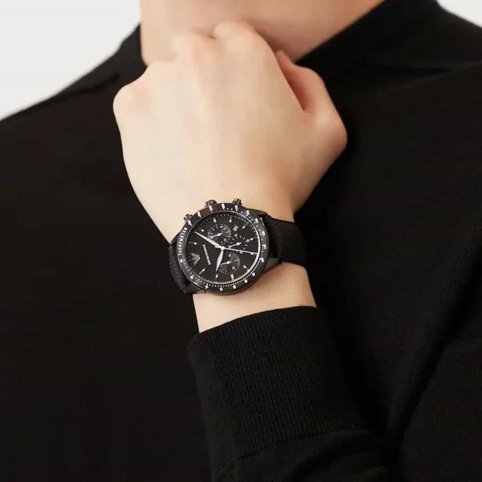 Moška ročna ura Emporio Armani Mario AR11453Moška ročna ura Emporio Armani Mario AR11453 združuje športen videz in elegantno oblikovanje, kar izžareva brezčasno prefinjenost. S svojo popolnoma črno barvo ohišja in številčnice ter kontrastnimi srebrnimi detajli ta ura izžareva športno eleganco in prefinjenost, ki pritegne pozornost v vsaki situaciji. Emporio Armani AR11453 je zasnovana za sodobne moške, ki cenijo kakovost, natančnost in eleganco.Lastnosti in prednosti ure: Eleganten in športen dizajn: Kombinacija črnega tekstilnega paščka in srebrnih detajlov na številčnici ustvarja uravnotežen videz, primeren za vsako priložnost. Kakovosten quartz mehanizem: Quartz mehanizem zagotavlja natančno delovanje in zanesljivost, kar pomeni manj vzdrževanja in daljšo življenjsko dobo baterije. Vzdržljivo ohišje iz nerjavečega jekla: Nerjaveče jeklo (316L) je zelo trpežno in odporno na praske ter korozijo. Antialergenski material ne reagira s telesnimi tekočinami in je prijazen do kože, kar omogoča udobno nošenje.Tehnične lastnosti: Premer ohišja: 43 mm – idealna velikost za moško zapestje, ki zagotavlja eleganten in sodoben videz. Debelina ohišja: 12 mm – subtilna debelina, ki omogoča udobno nošenje in sodoben slog. Material ohišja: Nerjaveče jeklo 316L – visokokakovosten material, ki je trpežen, antialergen in prijazen do kože. Vodoodpornost: 10 ATM – Ura ima oznako vodotesnosti kar 100 m (10 ATM), kar pomeni, da ta ura prenese tudi večje vodne šoke. Teža: 75 g – lahka ura, ki zagotavlja udobje pri nošenju ves dan.Zakaj izbrati moško ročno uro Emporio Armani Mario AR11453?Moška ročna ura Emporio Armani Mario AR11453 je odlična izbira za vse, ki iščejo kombinacijo športne funkcionalnosti in elegantnega dizajna. S svojim zanesljivim quartz mehanizmom ponuja natančnost in zanesljivost, kar pomeni manj skrbi glede vzdrževanja. Poleg tega je ohišje iz nerjavečega jekla trpežno in antialergeno, kar zagotavlja dolgotrajno uporabo in udobje.Emporio Armani AR11453 je več kot le ura; je modni dodatek, ki nadgradi vaš slog in izžareva prefinjenost ter eleganco v vsakem trenutku. Primerna je za vsakodnevno uporabo, saj združuje funkcionalnost in estetiko, ki izstopa v vsakem okolju. Nadgradite svoj stil z uro, ki je zasnovana za uspeh.Ura ima 12 mesečno garancijo.V kolikor z nakupom niste zadovoljni, lahko ročno uro v roku 60-ih dni od prejema vrnete na naš naslov, mi pa vam bomo vrnili kupnino.Paket vsebuje: Ročno uro Emporio Armani Mario AR11453 Originalno embalažo Navodila Certifikat o originalnem izdelkuRočna ura je idealna tudi za darilo, saj jo prejmete v originalni Emporio Armani darilni škatlici.