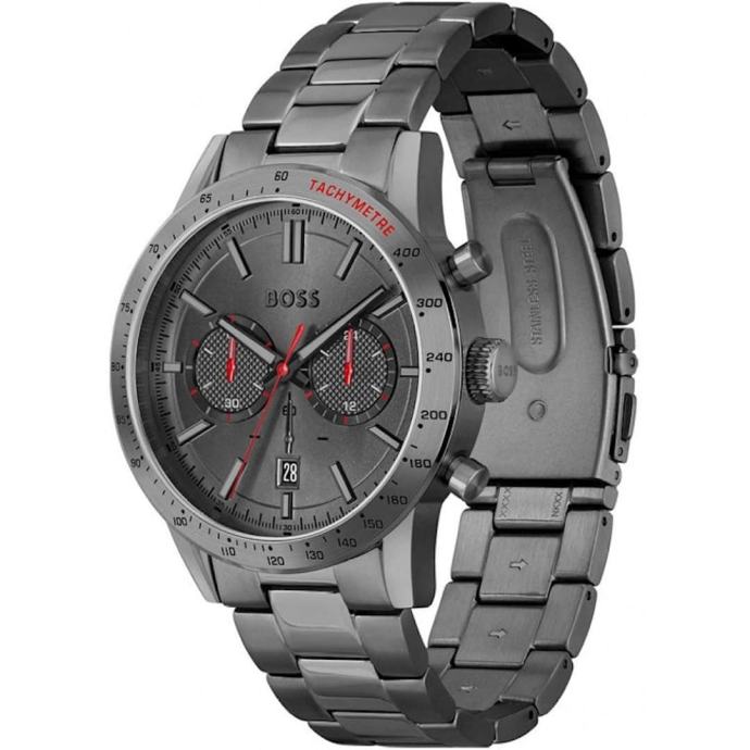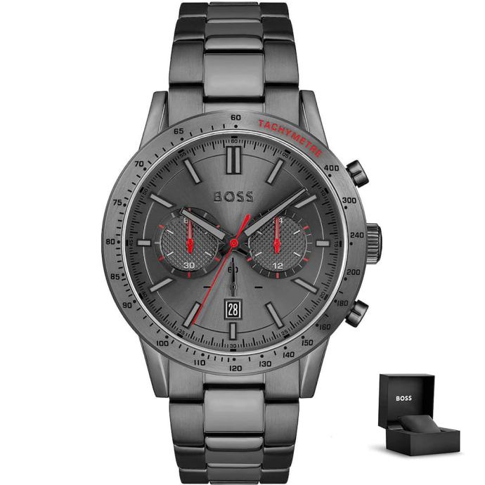 Moška ročna ura Hugo Boss Allure 1513924Moška ročna ura Hugo Boss Allure 1513924 združuje prestiž in sodoben dizajn, ki je popoln za samozavestnega moškega. Ohišje in kovinski pašček v elegantni sivi barvi ustvarjata prefinjen videz, medtem ko rdeči kazalci dodajo dinamičen kontrast. Ura je opremljena s kronografom za natančno merjenje časa, kar ji daje funkcionalnost in stil, primeren za vsako priložnost.Lastnosti in prednosti ure: Eleganten siv dizajn z rdečimi poudarki: Siva številčnica s srebrnimi oznakami in živahnimi rdečimi kazalci ustvarja edinstven kontrast, ki pritegne pozornost in daje prefinjen videz. Kronograf za natančno merjenje časa: Funkcija kronografa omogoča natančno merjenje časa pri športnih aktivnostih in vsakodnevnih opravkih, kar povečuje uporabnost ure. Vodoodpornost 50 m (5 ATM): Ura je odporna na vodo pri tuširanju in pranju avtomobila, kar omogoča brezskrbno uporabo v različnih pogojih. Kovinski pašček iz nerjavečega jekla: Trpežen kovinski pašček zagotavlja udobje in vzdržljivost ter dodaja uri sodoben, eleganten videz. Luminescentni kazalci in oznake: Prevlečeni z visokokakovostnim luminescentnim materialom, ki omogoča enostavno branje časa v temi, kar povečuje funkcionalnost ure.Tehnične lastnosti: Mehanizem: Analogni s kronografom, ki omogoča natančno merjenje časa, idealen za poslovne in športne aktivnosti. Velikost ohišja: 45 mm, primerna za tiste, ki iščejo uravnotežen videz na zapestju z opaznim slogom. Material ohišja: Nerjaveče jeklo 316L s PVD prevleko, ki zagotavlja odpornost proti praskam in dolgotrajno ohranja sijaj. Debelina ohišja: 12 mm, kar zagotavlja udobno nošenje brez občutka teže na zapestju. Maksimalni obseg: 21,5 cm, omogoča prilagajanje različnim velikostim zapestja za optimalno udobje. Teža: 160 g, kar daje uri občutek kakovosti in robustnosti, a je še vedno udobna za celodnevno nošenje.Zakaj izbrati moško ročno uro Hugo Boss Allure 1513924?Moška ročna ura Hugo Boss Allure 1513924 je idealna izbira za moške, ki želijo združiti eleganco in funkcionalnost v eni uri. Izdelana iz visokokakovostnega nerjavečega jekla 316L, ta ura zagotavlja trpežnost in odpornost proti praskam in koroziji. Vodoodpornost do 50 m (5 ATM) omogoča brezskrbno uporabo med tuširanjem in pranjem avtomobila. Kovinski pašček in luminescentni kazalci dodajo sodoben pridih, medtem ko kronograf zagotavlja natančnost in zanesljivost. Investirajte v uro Hugo Boss Allure 1513924 in uživajte v njeni prestižni estetiki in vrhunski zmogljivosti, ki bo trajala leta.Ura ima 12 mesečno garancijo.Če z nakupom niste zadovoljni, lahko ročno uro v roku 60-ih dni od prejema vrnete na naš naslov, mi pa vam bomo vrnili kupnino.Ročna ura je idealna tudi za darilo, saj jo prejmete v originalni Boss darilni škatlici in originalnimi navodili.Za Hugo Boss ure nudimo brezplačno dostavo po Sloveniji, tako, da lahko hitro in enostavno dobite svoj novi luksuzni dodatek.