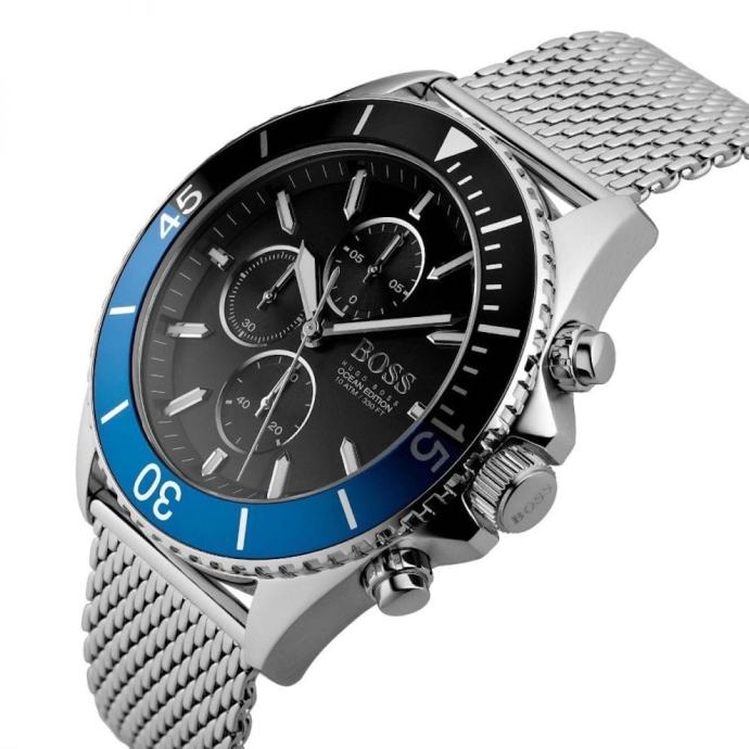 Moška ročna ura Hugo Boss Ocean Edition 1513742Moška ročna ura Hugo Boss Ocean Edition 1513742 je privlačna in funkcionalna ura, zasnovana za sodobnega moškega, ki ljubi vodne dogodivščine. Kolekcija Ocean Edition izstopa z vodotesnostjo do 100 metrov (10 ATM), kar omogoča brezskrbno uživanje v vodnih športih. Privijačna krona dodatno zagotavlja vodotesnost, kar pomeni, da ste pripravljeni na vsako situacijo, bodisi v vodi ali na kopnem.Lastnosti in prednosti ure: Vodotesnost 100 m (10 ATM): Ta model je popolnoma prilagojen za vodne aktivnosti, vključno s plavanjem in potapljanjem na manjše globine. Privijačna krona preprečuje vdor vode in zagotavlja dodatno varnost pod vodo. Mrežasti kovinski pašček: Ura je opremljena z mrežastim kovinskim paščkom, ki omogoča enostavno nastavitev dolžine za popolno prileganje zapestju. Izdelan je iz visokokakovostnega nerjavečega jekla, ki zagotavlja dolgotrajno udobje in trpežnost. Natančen kronograf: Kronograf s štoparico omogoča natančno merjenje časa, kar je idealno za športne aktivnosti in dinamičen življenjski slog. Luminescenčni kazalci: Svetleči kazalci in številčnica omogočajo enostavno berljivost časa tudi v temnih pogojih, kar zagotavlja funkcionalnost tako podnevi kot ponoči. Edinstvena barvna kombinacija: Kombinacija modre in srebrne barve doda uri edinstven videz, ki izstopa na vsakem zapestju in poudari vaš individualni slog.Tehnične lastnosti: Mehanizem: Kronograf za natančno merjenje časa, idealen za vse, ki potrebujejo dodatno funkcionalnost. Velikost ohišja: 46 mm, kar daje uri robusten in eleganten videz. Debelina ohišja: 11 mm, ki omogoča udobno nošenje in eleganten profil. Material ohišja: Nerjaveče jeklo (316L) z ionsko prevleko (PVD), ki zagotavlja odpornost proti praskam in dolgotrajno vzdržljivost. Pašček: Mrežasti kovinski pašček, ki ga je mogoče enostavno nastaviti, da se popolnoma prilega vsakemu zapestju. Teža: 140 g, kar zagotavlja udobje in stabilnost pri nošenju.Zakaj izbrati moško ročno uro Hugo Boss Ocean Edition 1513742?Moška ročna ura Hugo Boss Ocean Edition 1513742 združuje elegantno obliko s športno funkcionalnostjo, zaradi česar je idealna izbira za vsakega moškega, ki ljubi avanture na vodi in izven nje. Z vodotesnostjo do 100 metrov (10 ATM) in privijačno krono ste lahko prepričani, da bo ura zdržala vse vaše podvige. Mrežasti kovinski pašček omogoča enostavno prilagoditev za udobno nošenje, medtem ko natančen kronograf in luminescenčni kazalci zagotavljajo, da je ura vedno pripravljena na akcijo. Pridobite si ta izjemen časomer, ki ne samo da izstopa, ampak tudi opravi svoje delo z eleganco in slogom.Ura ima 12 mesečno garancijo.V kolikor z nakupom niste zadovoljni, lahko ročno uro v roku 60-ih dni od prejema vrnete na naš naslov, mi pa vam bomo vrnili kupnino.Ročna ura je idealna tudi za darilo, saj jo prejmete v originalni Hugo Boss darilni škatlici in originalnimi navodili.Za Hugo Boss ure nudimo brezplačno dostavo po Sloveniji, tako, da lahko hitro in enostavno dobite svoj novi luksuzni dodatek.