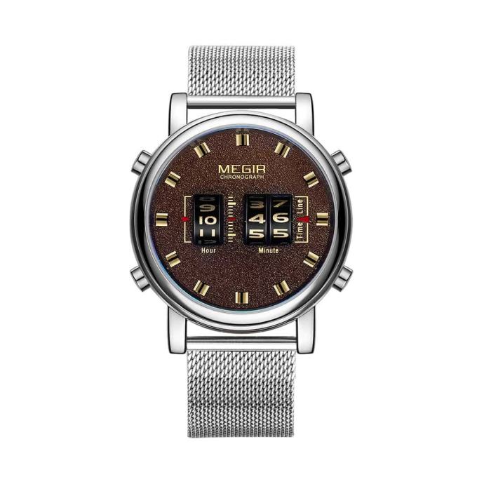 Moška ura Megir MilitaryMoška ura Megir Military je modna ura, kot je še niste videli. Ima analognim prikazovalnikom časa, ki ne uporablja kazalcev. Ta posebni prikaz časa poganja japonski Quartz mehanizem, ki poskrbi, da je ura vedno točna.Ta ročna ura je primerna za vse, ki si želijo, da so v centru pozornosti. Zagotavljamo vam, da bo to uro opazil skoraj vsak!Brezstopenjsko nastavljiv kovinski pašček pa bo poskrbel, da bo uro na vsakem zapestju videti popolno, saj je ta pašček mogoče nastaviti na popolnoma poljubno dolžino.Ura se poda vsem, ki se radi oblačijo modno, odlično pa se ujame tudi s formalnimi oblačili. Ročna ura se lahko pohvali s Hardlex mineralnim steklom, ki je izredno trdo in ga je skoraj nemogoče opraskati. Megir je s to serijo moških ročnih ur še enkrat dokazal svojo kakovost. Ta ročna ura ima res atraktiven dizajn, ki nikogar ne pusti hladnega.Vaš nakup je popolnoma brez tveganja. Saj v kolikor z nakupom niste zadovoljni, lahko naročeno v roku 60-ih dni od prejema vrnete na naš naslov. Mi pa vam bomo vrnili denar.Ročna ura ima 12 mesecev garancije.