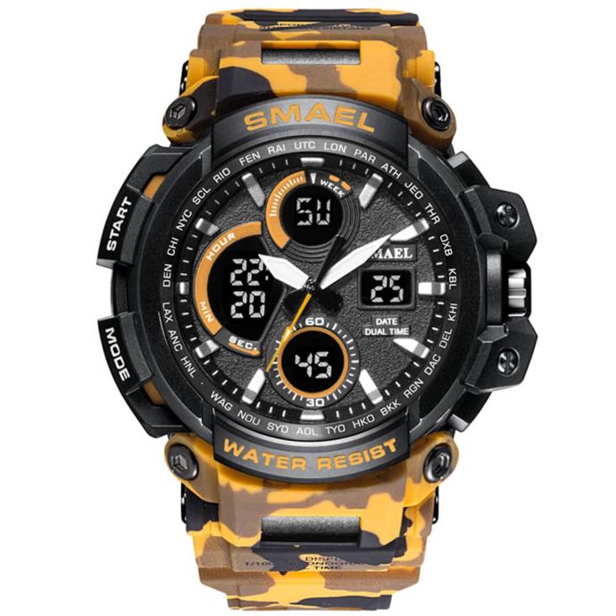 Robustna in funkcionalna: Moška ročna ura Smael S-shock MTGB1000 Camuflage 5Moška ročna ura Smael S-shock MTGB1000 Camuflage 5 je zasnovana za vzdržljivost v najzahtevnejših pogojih, narejena iz trpežne plastike s silikonskim/gumijastim pasom. Idealna je za vse, ki se soočajo z intenzivnimi fizičnimi aktivnostmi ali zahtevnimi okolji.Lastnosti in prednosti ure: Izjemna robustnost: Ura Smael S-shock MTGB1000 je zasnovana za vzdržljivost v najzahtevnejših pogojih. Narejena iz trpežne plastike in s silikonskim/gumijastim pasom, je idealna za vse, ki se soočajo z intenzivnimi fizičnimi aktivnostmi ali zahtevnimi okolji. Napredne funkcije: Ta ura združuje analogni in digitalni prikaz, kar omogoča enostavno branje časa. Poleg tega vključuje prikaz datuma in dneva v tednu, časovni alarm, štoparico in osvetlitev, kar povečuje njeno uporabnost v različnih situacijah. Neodvisni mehanizmi: Ura ima dva medsebojno neodvisna mehanizma - enega za digitalni in drugega za analogni prikaz. Digitalna ura uporablja veliko baterijo CR2025, medtem ko analogni del uporablja manjšo LR626 baterijo, kar zagotavlja daljšo življenjsko dobo in zanesljivost. Vodotesnost do 50 metrov (5 ATM): S to uro se lahko brez skrbi tuširate, saj je zasnovana za vodotesnost do 50 metrov. Dolga življenjska doba baterije: Vgrajena velika baterija japonske blagovne znamke Maxell (CR2025) zagotavlja dolgotrajno delovanje digitalnega dela ure, medtem ko analogni del poganja manjša LR626 baterija. Natančnost in zanesljivost: Preizkušeni japonski Quartz mehanizem zagotavlja natančnost delovanja, kar je ključnega pomena za vsako uro. Elegantna vojaška estetika: Črno rumena kamuflažna kombinacija daje uri privlačen in robusten videz, ki bo navdušil vse ljubitelje vojaškega sloga. Ugodna cena: Ura Smael S-shock MTGB1000 ponuja vse prednosti in funkcionalnosti dražjih blagovnih znamk, vendar po bistveno ugodnejši ceni, kar jo naredi dostopno širšemu krogu kupcev.Dodajte svojemu videzu robustnost in funkcionalnost z moško ročno uro Smael S-shock MTGB1000 Camuflage 5Moška ročna ura Smael S-shock MTGB1000 Camuflage 5 je več kot le ura; je izraz vaše pripravljenosti na vsak izziv. Njen vzdržljiv dizajn z vojaškim pridihom zagotavlja zanesljivost in natančnost, ki sta ključni v zahtevnih pogojih. S to uro boste vedno pripravljeni na intenzivne fizične aktivnosti in ekstremne situacije. Ne zamudite priložnosti, da postanete ponosni lastnik te izjemne ure, ki združuje robusten videz in vrhunsko funkcionalnost. Naročite zdaj in uživajte v popolni kombinaciji stila, vzdržljivosti in naprednih funkcij, ki vam bodo služile dolga leta. Dovolite si moč in zanesljivost, ki ju prinaša Smael S-shock MTGB1000 Camuflage 5, in izstopajte z vsakim korakom.Tehnične lastnosti: Velikost ohišja: 47 mm – robustna velikost, primerna za moški zapestje. Maksimalni obseg: 23,00 cm – primerna tudi za večja zapestja. Vrsta pasu: Silikon / Guma – za udobno nošenje in fleksibilnost. Vodotesnost: 5 ATM – primerna za tuširanje in vodne aktivnosti. Mehanizem: Quartz - analogno digitalni – združuje analogni in digitalni prikaz za večjo funkcionalnost. Funkcije: 12/24 ur, alarm, dan v tednu, datum, luminiscenca, osvetlitev, prikaz dveh različnih časov, štoparica – vse, kar potrebujete za vsako situacijo.Vaš nakup je popolnoma brez tveganja. Saj v kolikor z nakupom niste zadovoljni, lahko naročeno v roku 60-ih dni od prejema vrnete na naš naslov. Mi pa vam bomo vrnili denar.Ročna ura ima 12 mesecev garancije.