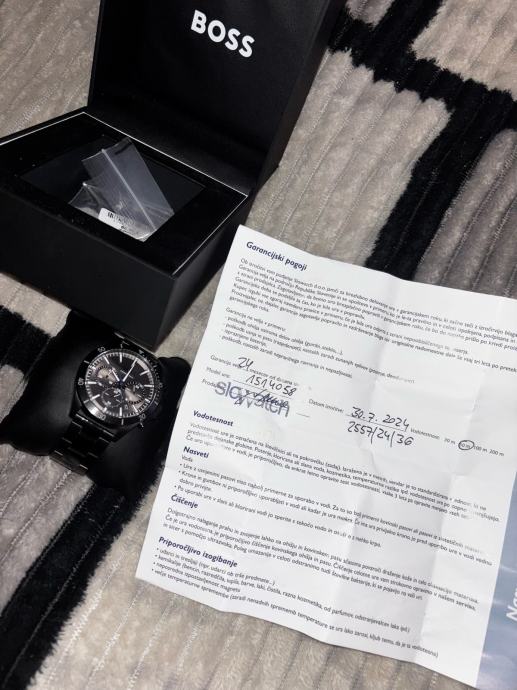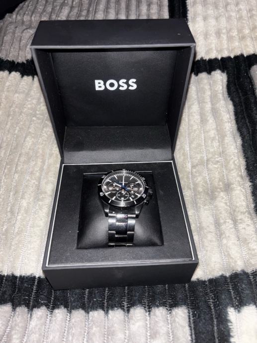 Prodajam mosko Boss uro. Ura je nosena stara leto in par mesecev. Ima par prask ter na notranji strani je pašček malo razbarvan kar se pri nošenju nevidi. Pašček je kovinski. Ura je črne barve in gre do 50ft globine. Cena za resnega kupca ni zadnja. Orginal cena je bila 380€, kupljena v Slowatchu.