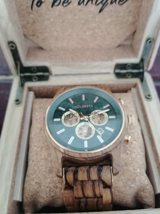 Prodam novo nerabljeno leseno moško uro Holzkern. Cena v redni prodaji je 200€.