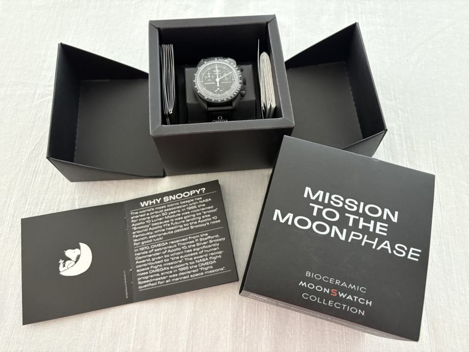 Omega Swatch MISSION TO THE MOONPHASE - NEW MOON Snoopy Moonswatch