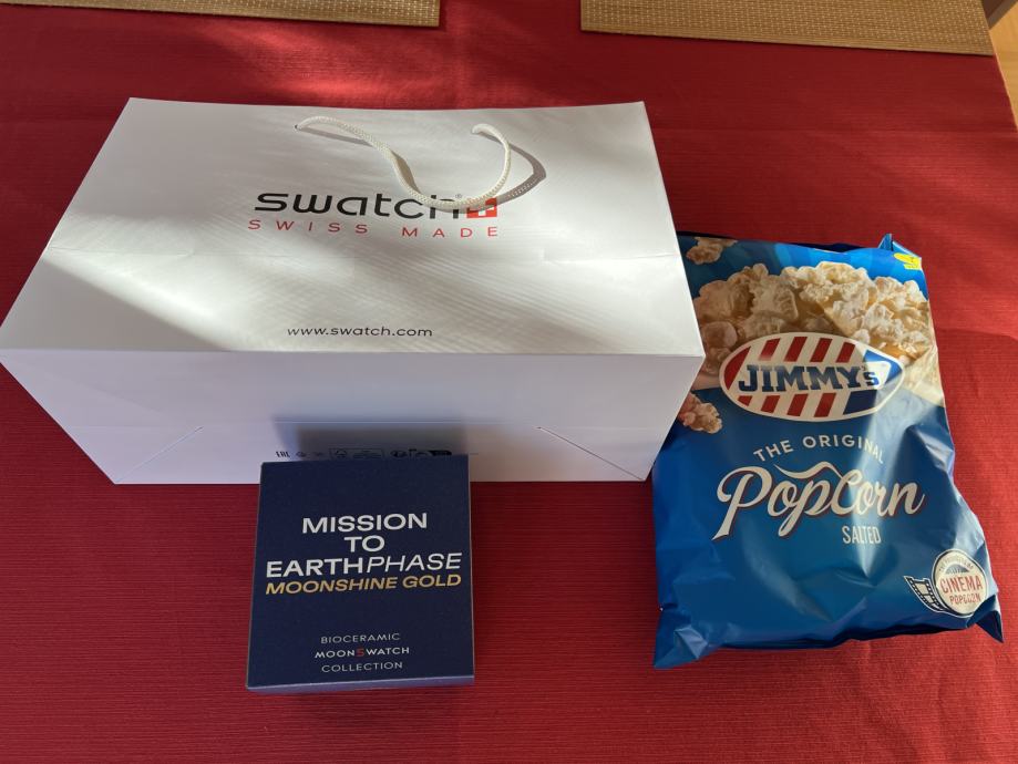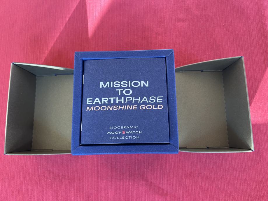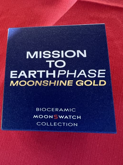 Ura Omega x Swatch Mission to Earthphase Moonshine Gold moonswatch. Ura je nerabljena, omejena izdaja, ki jo je bilo možno kupiti samo en dan. Kupljena v Slowatch butiku v LJ. Zraven priložim vso originalno embalažo, račun in garancijo.