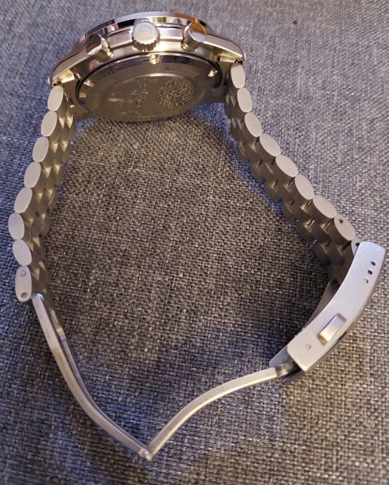 Nov, odličen homage poklon Omega speedmaster moonwatch, prvi uri na luni. Ura ima vse karakteristike originala, 42mm ohišje, premer lunete 39.8mm, 20mm pas, keramična luneta, safirno steko, privita krona, 100m vodoodporna. Priložim tudi ostale členke, nato pas in škatlo. Lahko pošljem po pošti ali okolica Murske Sobote.