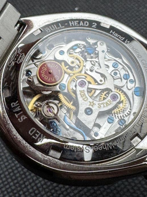 Naprodaj je Red Star Bullhead 2 Chronograph z mehanskim Column-Wheel mehanizmom Seagull ST19 s Swan-Neck fino regulacijo