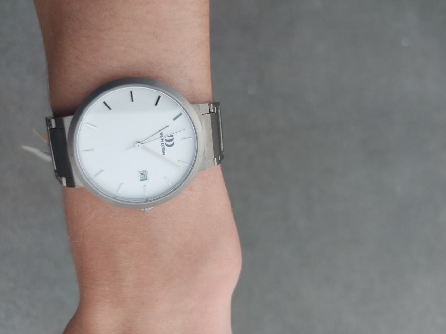 Ura je nova, pride z novo baterijo, zandji 2 sliki sta za prikaz velikosti. Pašček je iz titana