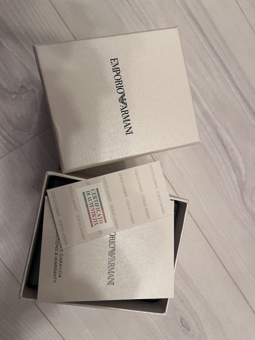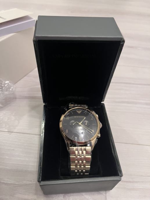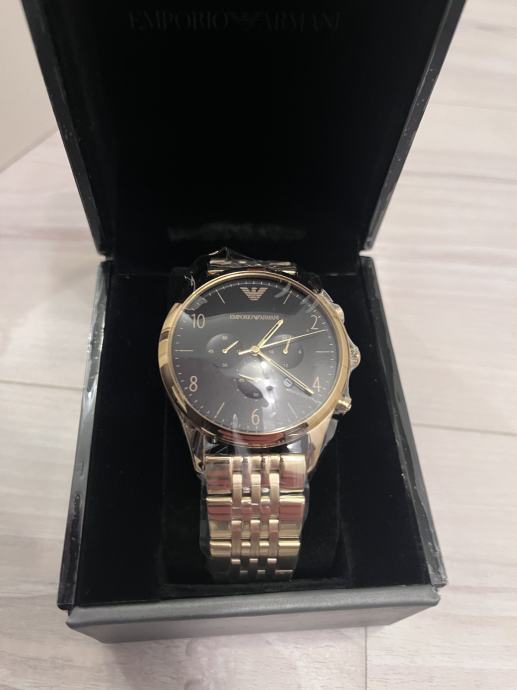 Prodam novo, nerabljeno ročno uro Emporio Armani Classic Chronograph v zlati barvi s črno številčnico.