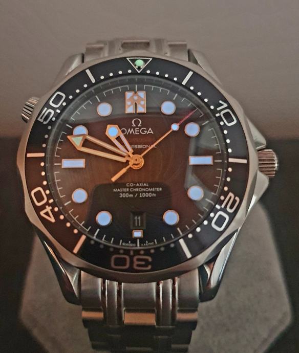ROČNA URA OMEGA SEAMASTER DIVER 300m JAMES BOND 007 EDITION, PREMER : 42mm, AVTOMATSKI MEHANIZEM, VIDEN NA HRBTNI STRANI, DELUJE BREZHIBNO. VIDNA TUDI PONOČI.