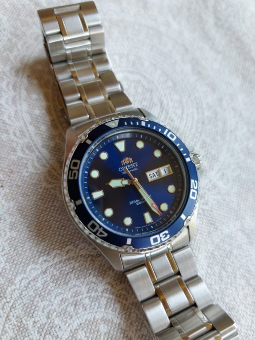 Prodam uro Orient Ray 2, stara eno leto, izredno malo nošena, zapesnica in ohišje brez prask, na zaponki komaj opazni znaki nošenja - praktično nova. Velikost 41,5mm, hišni avtomatski mehanizem f9622, vodoodporna 200m.