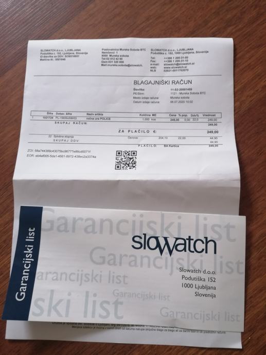 Ročna ura police kupljena pred 2 mesecema v Slowatch zraven je račun z garancijo.