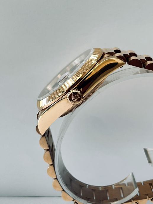 Nova, unisex, 5A+ (boljša od AAA+) REPLIKA Rolex Daydate. Ura ima vse originalne gravure na ohišju in na steklu, lasersko gravirano krono na 6. uri. Ura ima tudi garancijski list z NFC funkcijo ter edinstveno serijsko in referenčno številko (ref.128235).