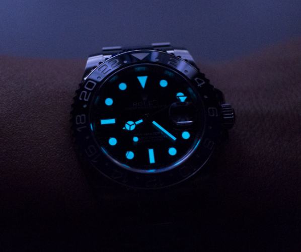 Ohišje in zapestnica sta izdelana iz 1:1 visokokakovostnega nerjavečega jekla 904L (uporablja se tudi za izdelavo originala) s kombinacijo brušenih in visoko poliranih površin. Zaponka na preklop Flick-lock s poliranim logotipom krone Rolex. EasyLink za lažje krajšanje dolžine zapestnice ure. Ura ima 100% steklo iz safirnega kristala z AR (antirefleksno) prevleko, ki je odporna na praske in preprečuje odsev svetlobe (švicarski standard, obojestransko, enako kot original). Luneta je keramična, odporna na praske in dvosmerno vrtljiva, prava modro-črna barva s platinastimi globoko vgraviranimi markerji, klik zvoka je imitiran popolnoma. Superlumed številčnica in kazalci v pravilni modri barvi, enaka pisava (font) in debelina za vsako številko. Popolnoma zaključeni končni robovi, napolnjeni z luminiscenco na kazalcih. Neodvisna nastavitev urnega kazalca, kar omogoča nastavitev GMT časa. Laserska gravura s serijsko številko, originalna teža ure približno 140 gramov, povečevalno steklo na datumu, vgravirana krona v steklu na 6h. Funkcije: ura, minute, sekunde, datum in GMT display.