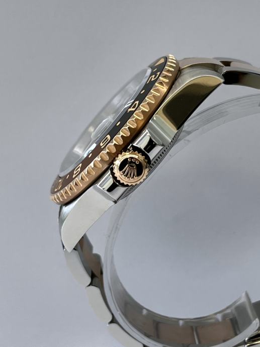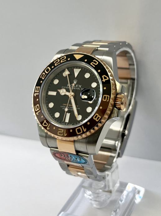 Nova, SUPER REPLIKA Rolex GMT MASTER II, bolj znana kot RootBeer. Iz tovarne CLEAN s švicarskim mehanizmom ETA cal.3285, najboljša replika, ki je trenutno na voljo na trgu. Ura ima vse originalne gravure na ohišju in mehanizmu ter na steklu, lasersko gravirano krono pri 6. uri, 1/1 z originalom.