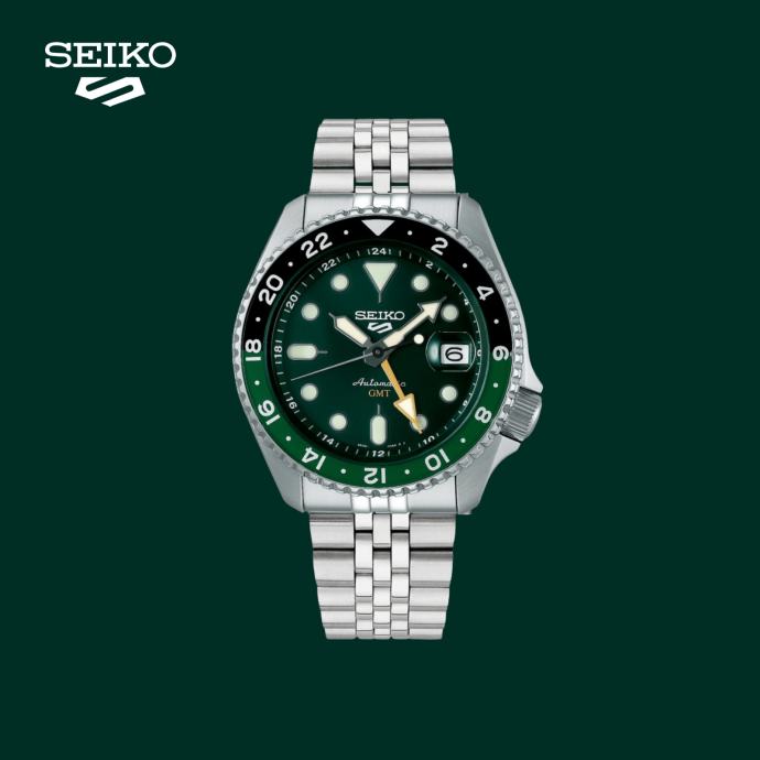 Oglas se nanaša na celotno kolekcijo SEIKO 5 SPORT GMT, ki je na voljo v več različicah (različne barve številčnice in lunete). Navedena cena velja na kos, pri naročilu več modelov je možna prilagoditev cene.