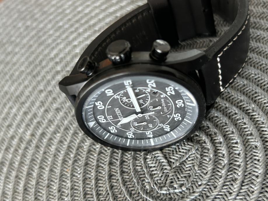 Lepo ohranjena moška Citizen Eco-Drive ura. Kaliber B620, kronograf funkcija. Črno ohišje z ionsko prevleko, sivo črna številčnica.