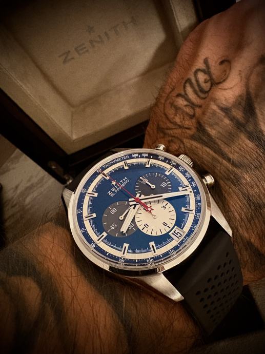 Prodam Zenith el primero chrono tricolor 42mm ref: 03.2040.400/53.C700 KOMPLET škatla, račun, kartica, knjižica, zunanja škatla, vrečka, račun za pooblaščeni servis 1200 €, dodatno original silikonski pas in zaponka 200 €, dodatno moder pašček. Na splošno je ura v vrhunskem stanju z kalibrom, ki ga je vgrajeval rolex v daytona model. Cena 5000 € za gotovino, MOŽNA MENJAVA za cenejšo ali dražjo, v menjavi se cena ustrezno prilagodi.