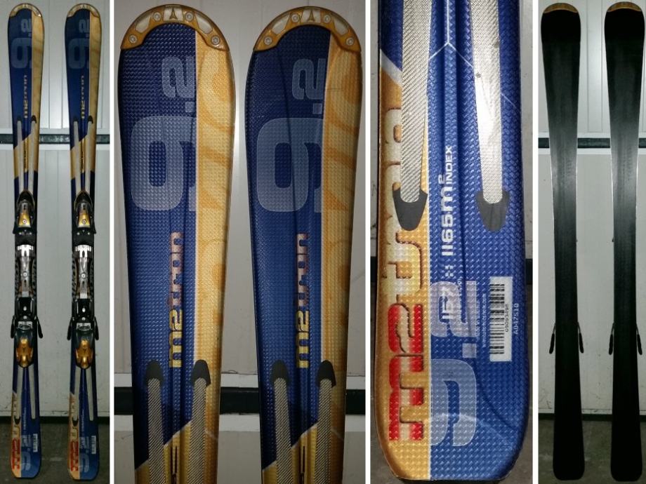 Lepo ohranjene smuči, vozil jih je moški, tudi spodnja stran smuči je lepo ohranjena.
