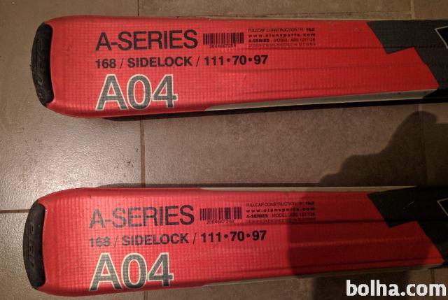 Smuči Elan A04 dolžine 168 z vezmi, malo rabljene.