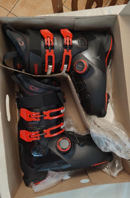 Prodam 2x nošene pancarje Atomic z zapiranjem Boa. Velikost čevljev je 280/285 (približno 44-45 št. noge). Čevlji imajo širino 100 mm, kar pomeni da se lepo prilegajo stopalu srednje velikosti. S trdoto (fleksom) 110 so ravno prav trdi, da dajejo moč in hkrati nudijo udobje.