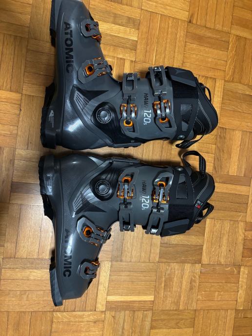 Prodajam rabljene smučarske čevlje Atomic Hawk 120s Ultra iz leta 2020, primerne za številko 43-44. Pancarji so v rahlo opraskani, z značilnimi oranžnimi detajli in črno-sivo barvo.