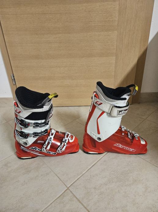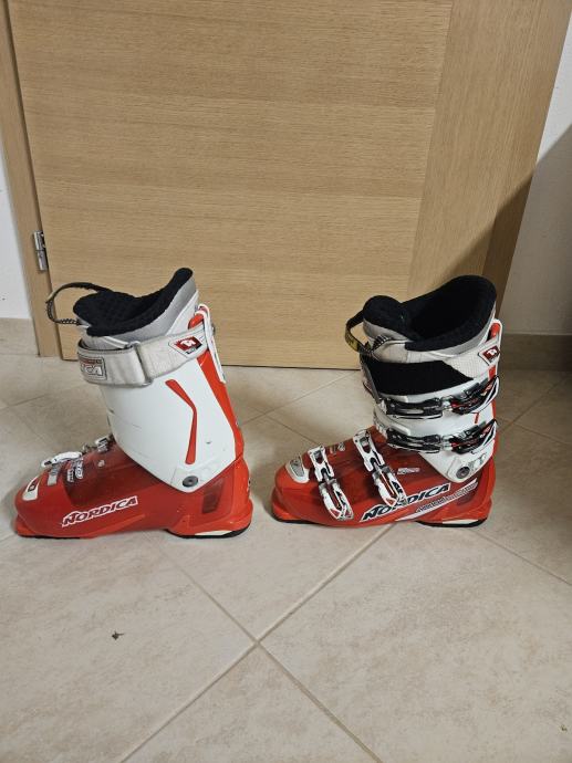 Prodajam rabljene moške smučarske čevlje znamke Nordica SPEEDMACHINE v velikosti 44-45. Čevlji so rdeče-bele barve srednje ohranjeni.