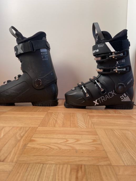 Moški smučarski par čevljev, notranji čevelj velikosti 280mm, na pancerju piše da je velikost 43,5. Pancerji so rabljeni 3 sezone, imajo 60 flexa in niso priporočljivi za ljudi s širšo nogo. Malo so popraskani a drugače dobro ohranjeni.