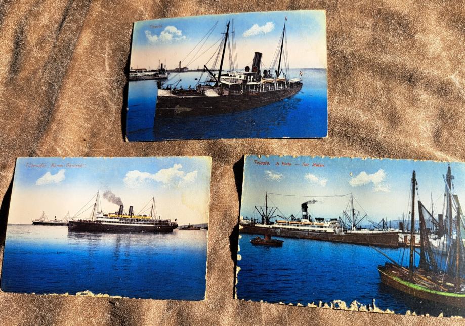 Lepo ohranjene starinske razglednice ladij iz Trsta, pred 1.sv vojno. Različni motivi. Možna menjava za stare značke. Osebni prevzem ali po pošti,kupec krije poštnino.
