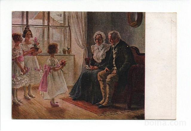 Tri deklice čestitajo očetu/dedku, mami/babici.